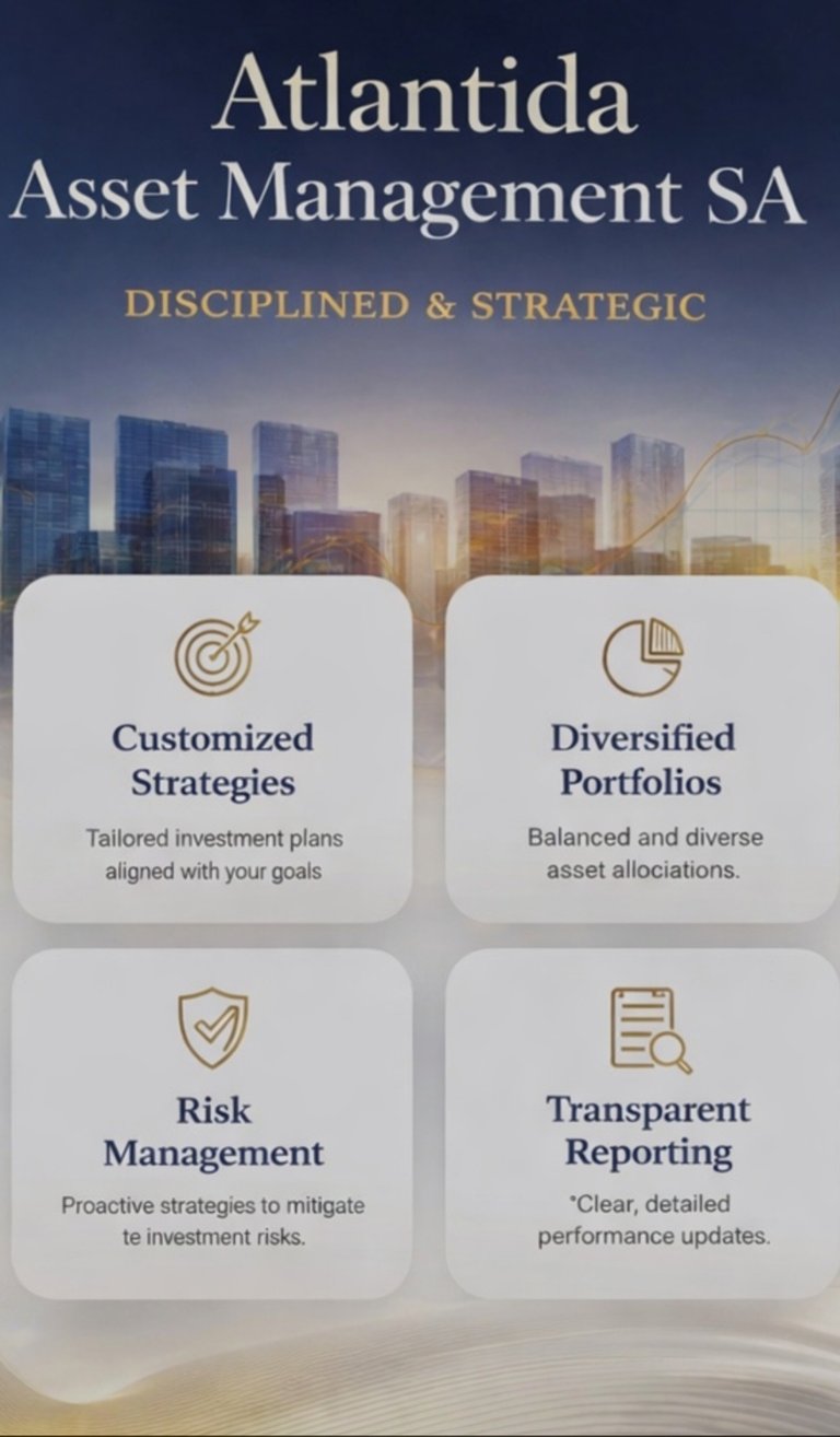 Chez Atlantida Asset Management SA, nous reconnaissons que chaque parcours d’investissement est unique, façonné par vos objectifs personnels, votre tolérance au risque et votre vision à long terme. Notre mission est de vous fournir les outils, les analyses et les stratégies nécessaires pour faire croître votre patrimoine et sécuriser votre avenir financier en toute confiance.